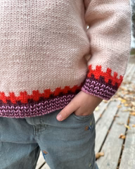 Cross Juunior on disainitud nii, et sellel on ligikaudu 25 cm varu (suurematel suurustel järk-järgult vähem varu). Suurused 1-2 (2-3) 3-4 (4-5) 5-6 (6-7) 7-8 (8-9) 9-10 (10-11) 11-12 (12-14) aastat sobivad rinnaümbermõõdule 53 (54) 56 (57) 59 (62) 64 (68) 72 (75) 78 (82) cm. Valmis kampsuni mõõdud leiad mustri esiküljelt (palun arvesta, et need mõõdud saavutad ainult õige koetihedus korral). NÄIDE: Kui kampsuni kandja rinnaümbermõõt on 62 cm, peaksid kuduma suuruse 6-7 aastat. Suuruses 6-7 aastat kapmsuni rinnaümbermõõt on 88 cm, mis toodud näites annaks 26 cm varu. Kui mõõdetud rinnaümbermõõt erineb vanusejuhisest, saate pikkust kohandada vastavalt kavandatavale kandjale. Sama kehtib juhul, kui kavandatav kandja on keskmisest lühem või pikem. Skeemid leiate siit.